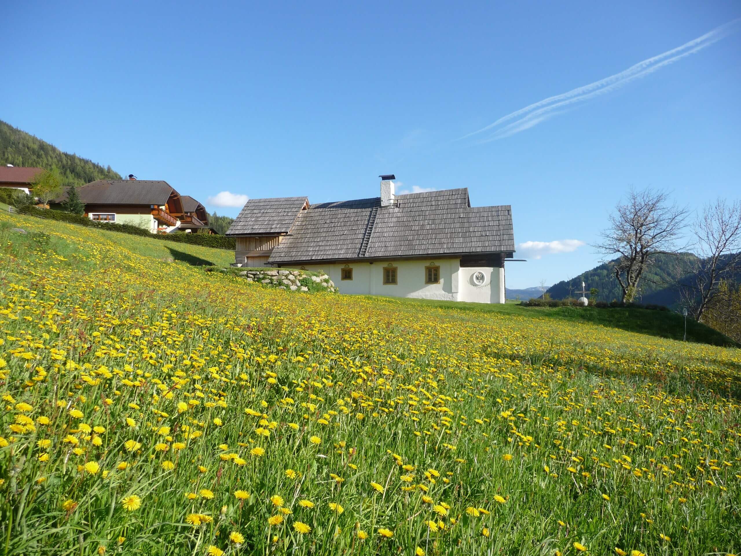 Secondo la decisione dell’Ufficio dei Beni Culturali, la Felflitzerkeusche è un “Einhof” a divisione trasversale del XVIII secolo. L’ampliamento situato sul lato della valle risale al 1798. Nel corso di un censimento dell’architettura rurale della Carinzia, la casa fu posta sotto tutela monumentale nel 1992 – soprattutto per il suo granaio originale conservato al piano superiore (oggi la stanza nuziale), come ricorda l’allora responsabile della tutela dei monumenti.
